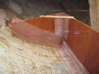 and a temporary clamping block to hold the hull end. |