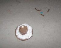 I took advantage of an open container of 4200 polyurethane sealant I was using on another project in the shop, and installed permanently the new bronze garboard drain, the opening for which I'd cut some time ago.