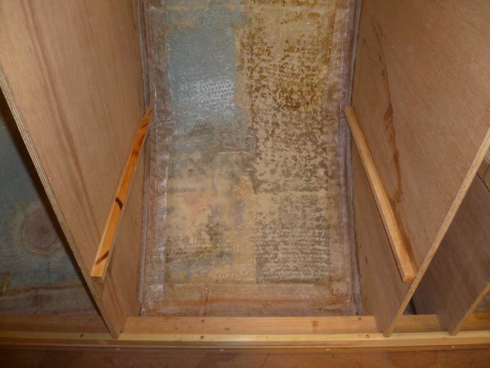 After lightly sanding the new tabbing in the galley, I