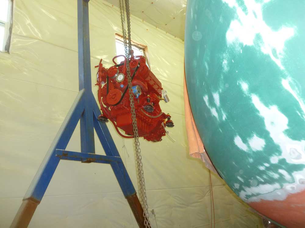 With the engine loosely secured to the foundations, I