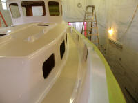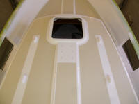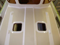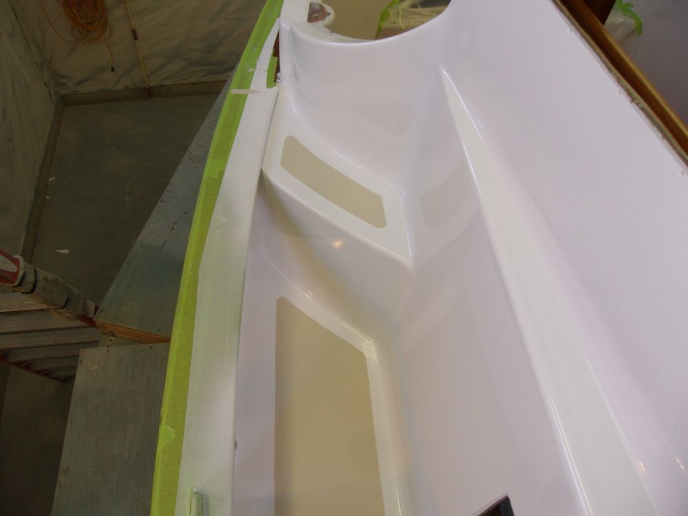 In a short work session, I applied the second coat of nonskid paint to the deck areas.  Much later, with the paint cured sufficiently, I removed the masking tape.
