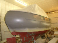 To that end, after final preparations (solvent wash and tack-off), I applied three coats of gray finish primer to the hull.