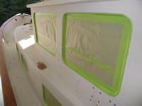 With some time available late in the afternoon, I continued work on the deck masking, and completed taping up the various port and hatch openings from the outside.