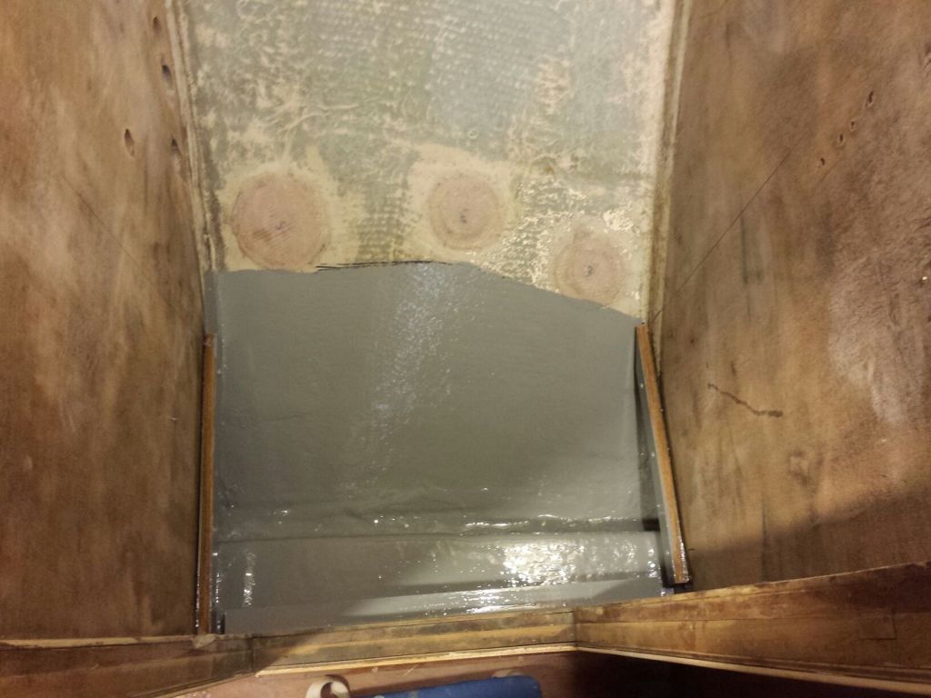 of the sump, packing it into a bed of thickened epoxy to